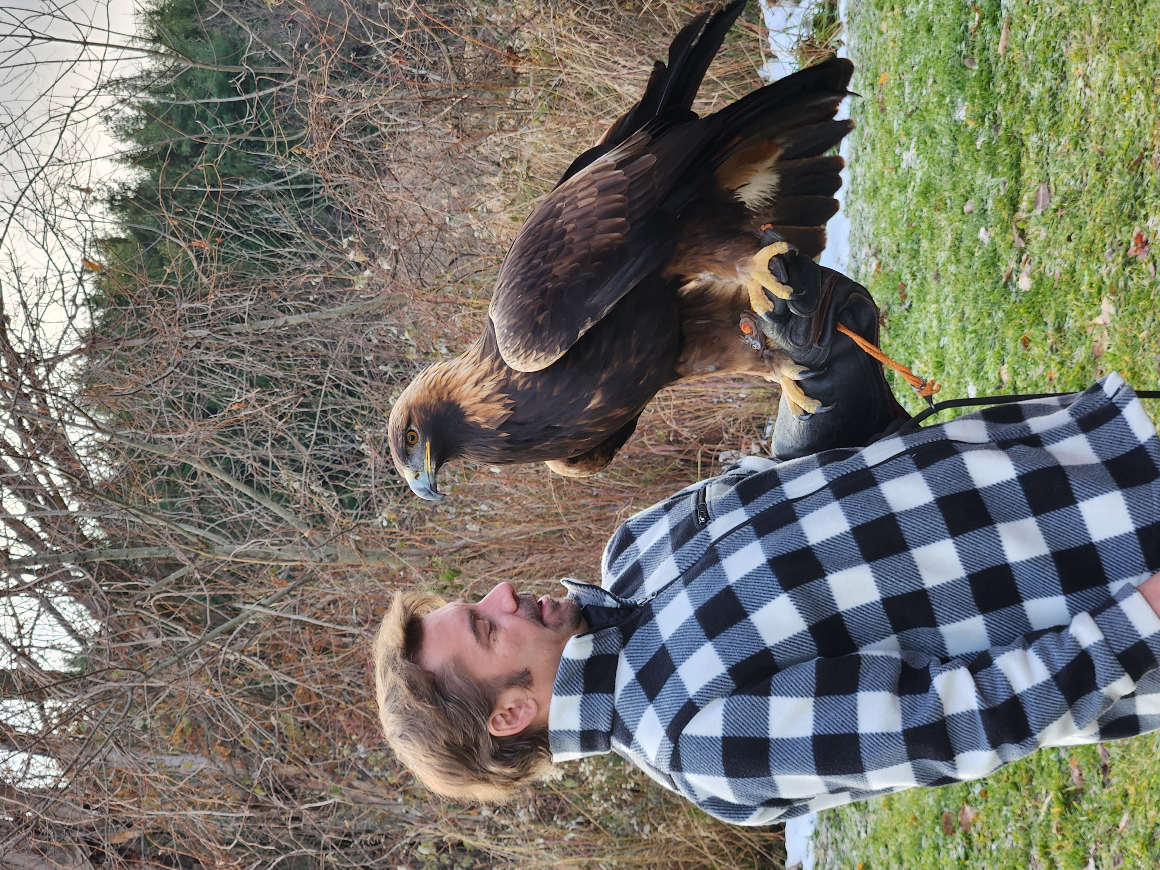 Gergő and the eagle getting to know each other>